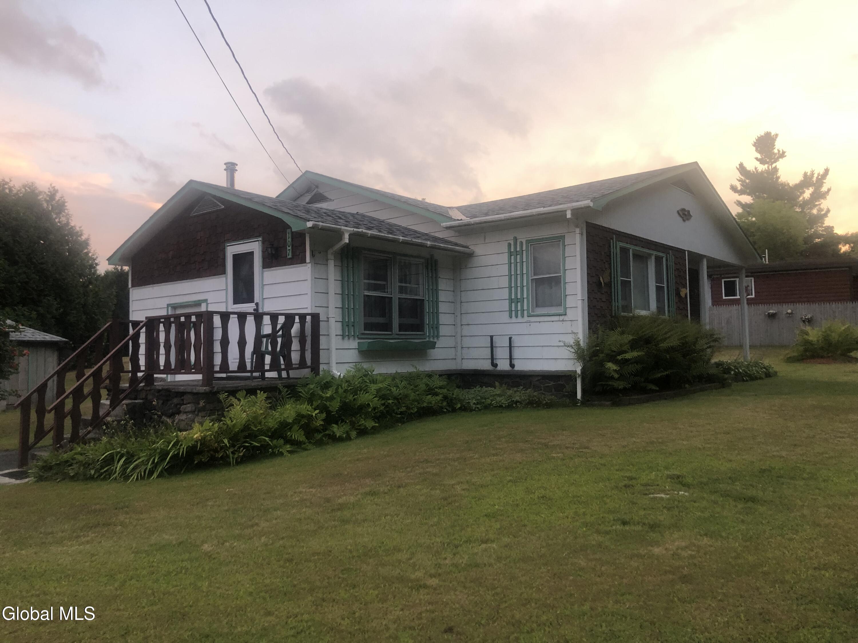 Most excellent starter home on a corner lot! This sale is a fully furnished one-story ranch home. All you literally need is a dining room table and chairs! Living room is furnished with a couch, chairs, end tables, coffee table, entertainment center and internet/cable hookups. New roof in 2023. Two bedrooms have beautiful bed and dresser sets; the third bedroom is currently set up for an office and has a desk, chair and washer/dryer hookup. Basement has both oil and wood hot air furnaces, with a full workshop while the heated two-car garage has an additional 8 x 18 machine shed. New roof on garage last month. Town water & sewer. Clean as a whistle and move in ready!